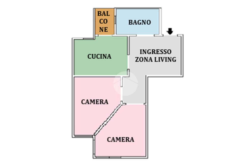L'immobile presenta con ingresso open-space che si apre sulla zona giorno, con cucina funzionale che dispone di finestra e porta finastra con uscita al balcone.