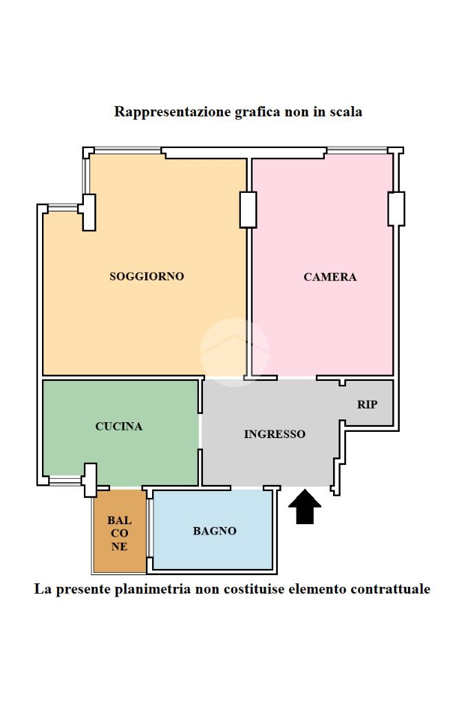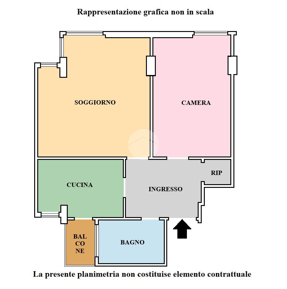 L'immobile è composto da ampio ingresso, accogliente e luminoso soggiorno attualmente adibito a camera da letto con doppia finestra ad angolo con affaccio aperto esposto ad Ovest, regolare e confortevolte camera da letto matrimoniale con ripostiglio, comoda e funzionale cucina abitabile con finestra e porta finestra su balcone di servizio, bagno completo con doccia e finesta.