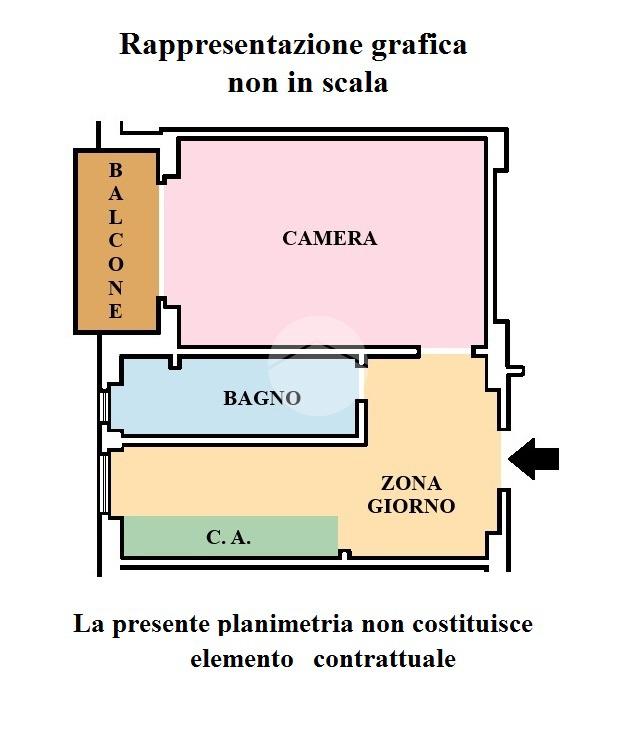 L'immobile è composto da accogliente ingresso open-space su zona giorno con cucina a vista finestrata e una regolare e comoda camera matrimoniale con finestra e porta finestra sull'abitabile balcone esposto ad ovest.
