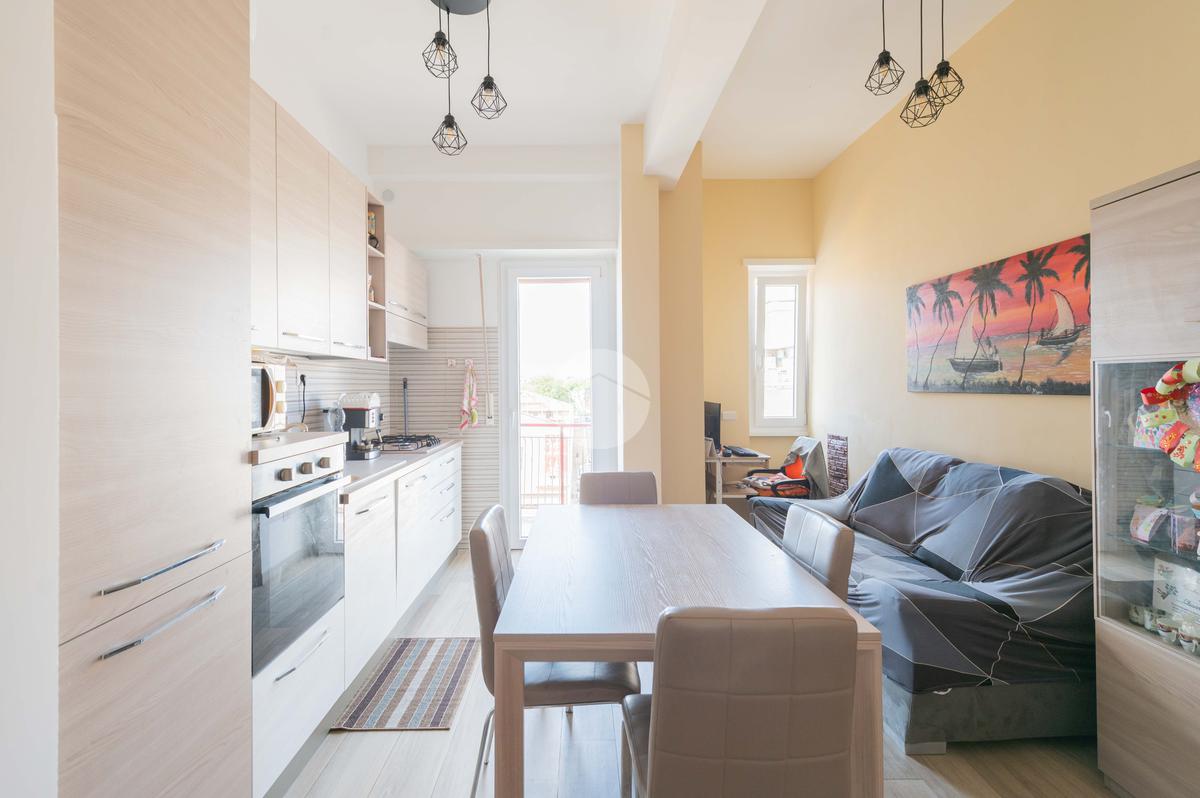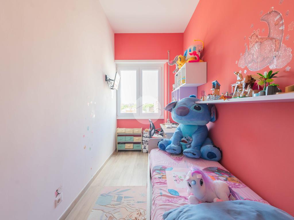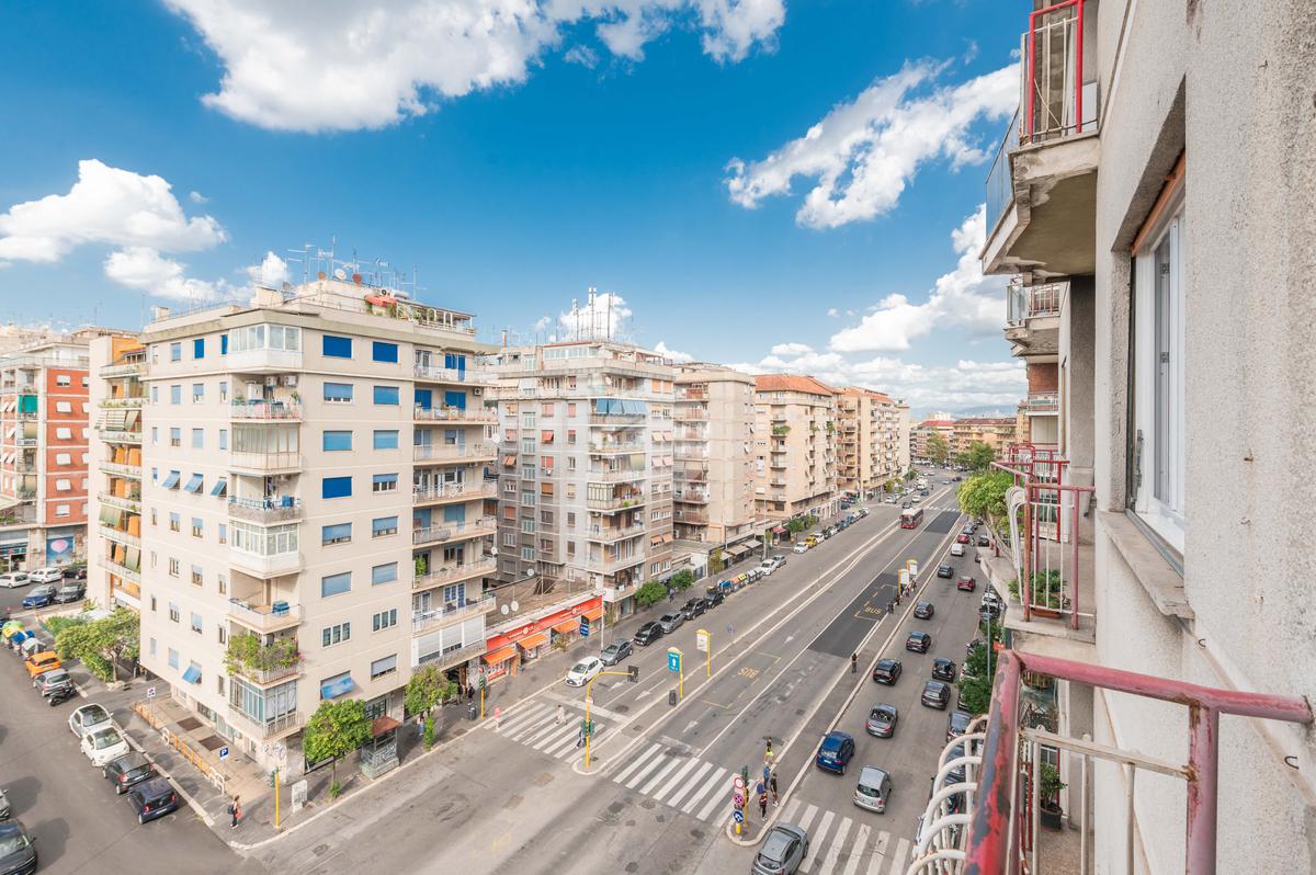 In via Tiburtina e, più precisamente difronte i rinomati Studios, proponiamo la vendita di un delizioso appartamento completamente ristrutturato nel 2024, posto al 6 piano di uno stabile di otto edificato nella seconda metà degli anni 50.' L'appartamento è composto da ingresso open-space su confortevole e moderno soggiorno con cucina a vista, ambiente che permette l'uscita sul balcone avente affaccio aperto su via dei Durantini, luminosa, grande e regolare camera matrimoniale con finestra a 3 ante, accogliente e ricercata cameretta con finestra esposta a nord, bagno completo con doccia e finestra e da un'utile ripostiglio. Completa la proprietà una preziosa e spaziosa cantina di pertinenza . La soluzione è stata oggetto di una recente, curata e studiata ristrutturazione e presenta infissi in PVC con vetrocamera, pavimenti in gres effetto parquet, porta d'ingresso blindata, aria condizionata e inoltre possiede tutte le certificazioni degli impianti.